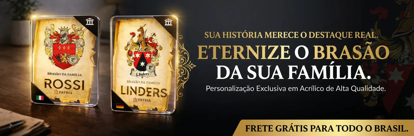 Brasão da Família Santana Acrílico 3D 10x14,5x1,5 Pátria Cidadania